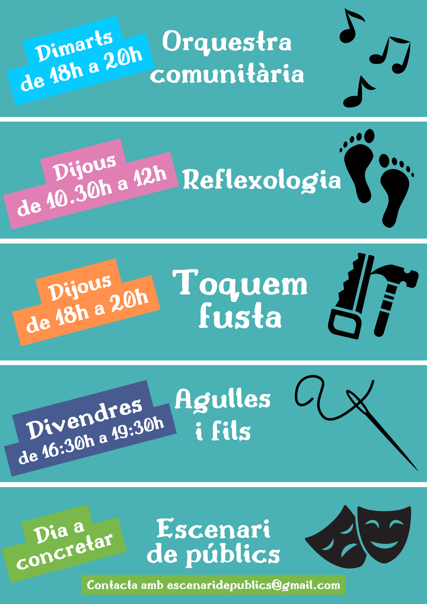 A més, convidem a tothom que tingui coneixements en un camp i els vulguin compartir sota la filosofia de l’EAC proposi nous tallers per continuar aprenent plegades.